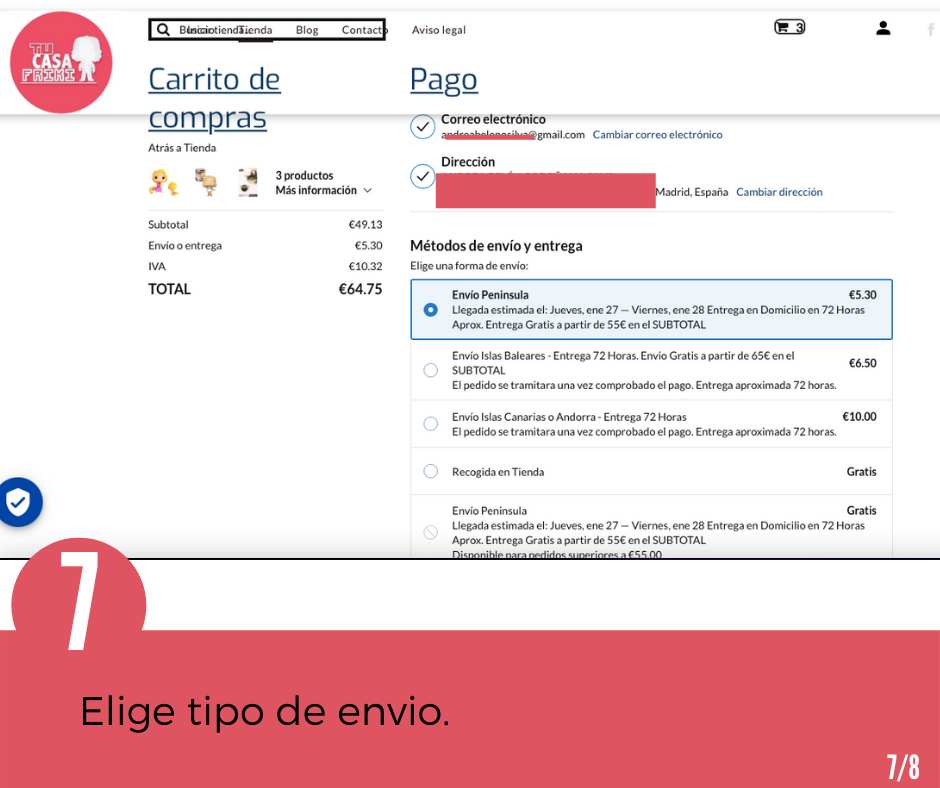 - Recibirás tu pedido en la dirección que nos indiques: