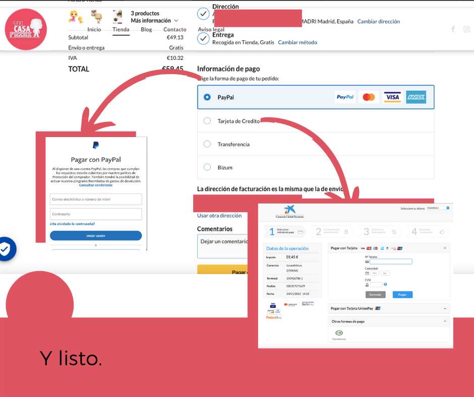 Tanto en nuestra tienda online, tucasafriki.es , como en nuestra tienda física de Madrid situada en la Calle Pedro Tezano 17, Local b. Aceptamos los siguientes métodos de pago: